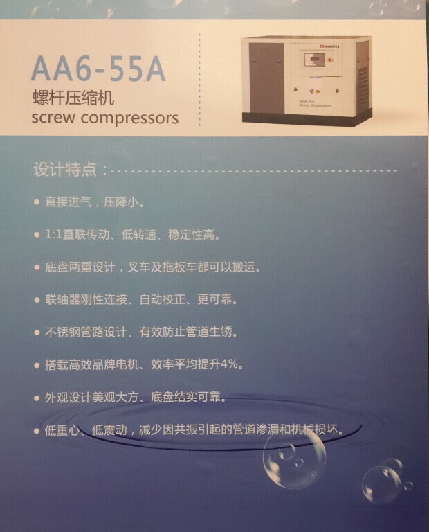 普通工頻螺桿式空壓機(jī),不銹鋼管設(shè)計(jì),不易腐化漏油,1:1直聯(lián)傳動(dòng)
