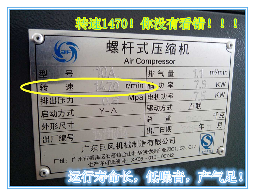 該款機(jī)器采用直聯(lián)驅(qū)動(dòng)設(shè)計(jì),使用聯(lián)軸膠替代皮帶,搭載20A大機(jī)頭和IP54電機(jī),1:1轉(zhuǎn)動(dòng),最高轉(zhuǎn)速才1470(絕對(duì)不相信吧),機(jī)器工作時(shí),噪音60分貝,運(yùn)行平穩(wěn),產(chǎn)氣量大,性價(jià)比高,是替代傳統(tǒng)活塞式空壓機(jī)用戶的最佳選擇!