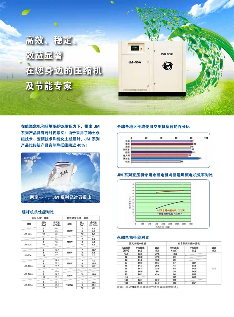 變頻和工頻的區(qū)別顯而易見,永磁變頻空壓機的節(jié)能優(yōu)勢和效率優(yōu)勢是取勝市場的必要手段。